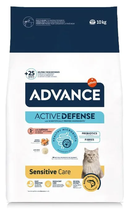 סדרת ה-Sensitive Care של מותג הפרמיום Advance פותחה במיוחד עבור חתולים בוגרים המתמודדים עם רגישויות במערכת העיכול או קשיים במטבוליזם. המזון משלב רכיבים איכותיים שנבחרו בקפידה כדי להבטיח ספיגה מרבית ותמיכה בריאותית רחבה.